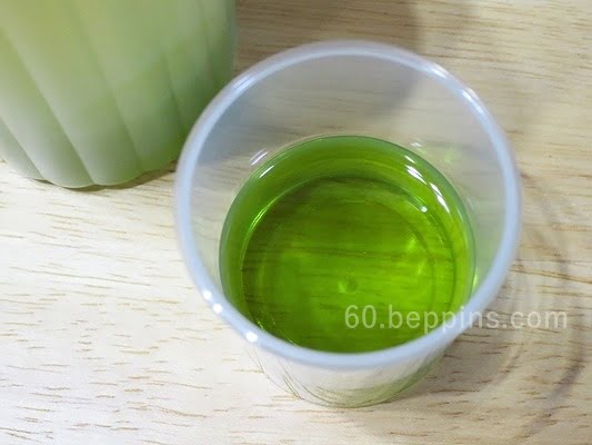 グリーンのエッセンスは、お湯に入れると乳白色に変化します。