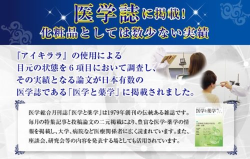 アイキララを徹底調査した実績の論文が、日本有数の医学誌「医学と薬学」に掲載されました。