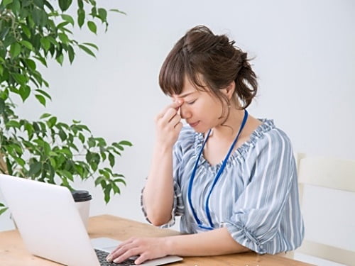 長時間パソコンやスマホの画面を見たり、細かい字を見たりした時などに起こる目の疲れ。