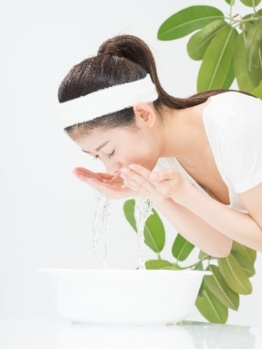 顔をぬるま湯(ひなた湯)だけで優しく洗い流す
