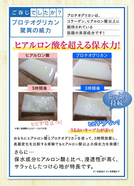 ヒアルロン酸も最高の美容成分と思ってましたが、プロテオグリカンはそれを上回る保湿力に驚きですね。